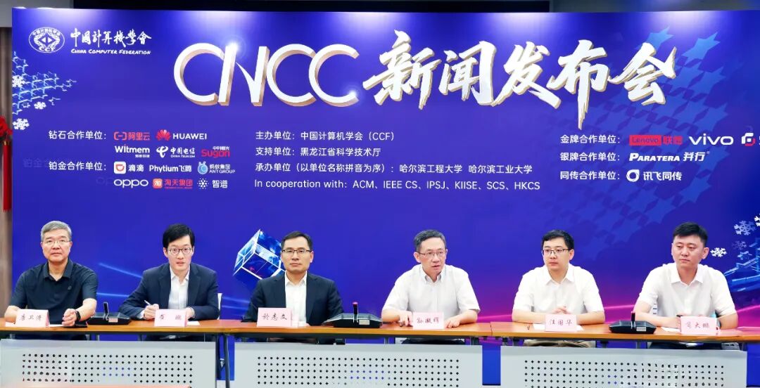 出席发布会的嘉宾包括:CNCC2025指导委员会主席、CCF理事长,中国工程院院士,中国科学院计算技术研究所研究员孙凝晖;大会指导委员会成员、组织委员会主席、CCF秘书长唐卫清;大会副主席、程序委员会主席、CCF常务理事,pp电子教授於志文;大会论坛委员会主席(学术界)、CCF理事、副秘书长、青工委主任,清华大学长聘副教授崔鹏;大会承办校代表pp电子教授苘大鹏;大会承办校代表哈尔滨工业大学教授汪国华。发布会由大会宣传委员会主席、CCF副秘书长王新霞主持。
